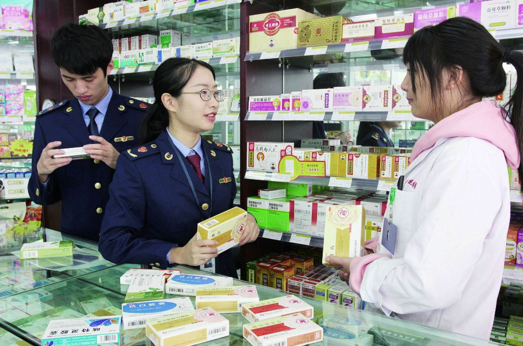 圖為監(jiān)管人員在一家藥店檢查。江友富 黃思捷 攝影報道