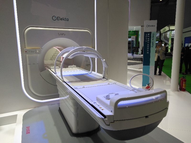 相鄰的醫(yī)科達(dá)展臺(tái),三臺(tái)大型設(shè)備“一”字排開,陣勢(shì)不小。最有分量的要數(shù)全球首臺(tái)高場(chǎng)強(qiáng)磁共振放療儀。據(jù)介紹,核磁技術(shù)與放療技術(shù)可謂“水火不容”,但二者結(jié)合后的臨床效果確實(shí)驚人。醫(yī)科達(dá)歷經(jīng)數(shù)年研究終于實(shí)現(xiàn)了核磁與放療“合二為一”,患者在核磁掃描的同時(shí)就可接受放射治療,讓放療過程更加簡(jiǎn)便。