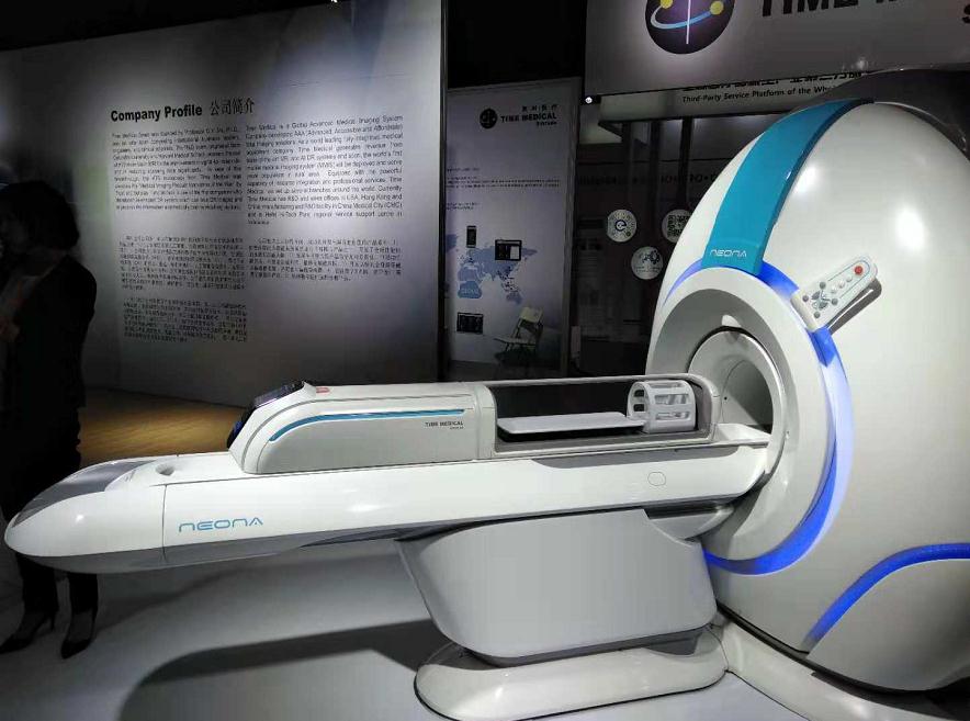 離開美敦力展區(qū),瞬間被一個(gè)縮小版的核磁共振儀“吸睛”——一改普通核磁共振儀的純白色,這款新型儀器加入藍(lán)色線條,充滿活力。據(jù)介紹,這是由美時(shí)醫(yī)療研發(fā)的嬰幼兒專用的1.5T超導(dǎo)磁共振成像系統(tǒng),機(jī)身嬌小玲瓏、輕便易安裝,成像清晰、分辨率高、能為醫(yī)生提供準(zhǔn)確的疾病信息,可以直接放進(jìn)兒童搶救室,零距離為嬰幼兒診斷,這次展會(huì)首次亮相中國(guó)。美時(shí)醫(yī)療負(fù)責(zé)人介紹,這款儀器售價(jià)為100萬(wàn)美元左右,如果展會(huì)期間下單可享受六折優(yōu)惠。記者離開展臺(tái)時(shí)看到陜西交易團(tuán)成員正在與該負(fù)責(zé)人溝通交流。