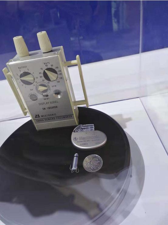參會(huì)之前,記者早已聽聞“和硬幣一樣大小”的心臟起搏器將亮相展會(huì),于是下午3點(diǎn),會(huì)展中心剛剛對(duì)外開放,便直奔7號(hào)館,來(lái)到美敦力展臺(tái),目睹這一起搏器的“尊容”。展臺(tái)工作人員很有心地將60年前的心臟起搏器、目前臨床常用的心臟起搏器,以及最新型的心臟起搏器,三款產(chǎn)品放在一個(gè)玻璃罩子里,對(duì)比很是明顯——60年前的比對(duì)講機(jī)還要大,目前臨床常用的像個(gè)大號(hào)優(yōu)盤,而最新型心臟起搏器只有膠囊那么大。