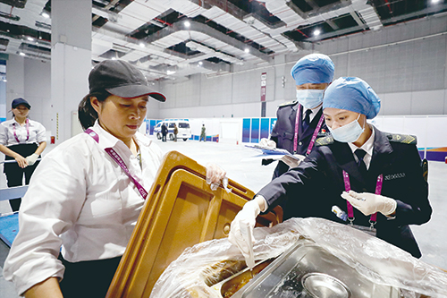 上圖為該局執(zhí)法人員在進博會現(xiàn)場檢測食品。陳炅瑋 攝