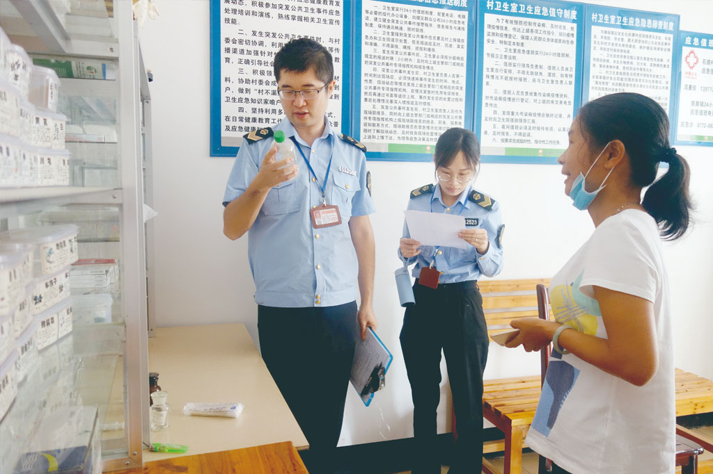 廣西壯族自治區(qū)鹿寨縣食藥監(jiān)局對(duì)鹿寨鎮(zhèn)17個(gè)村的衛(wèi)生所(室)進(jìn)行藥品質(zhì)量專項(xiàng)檢查