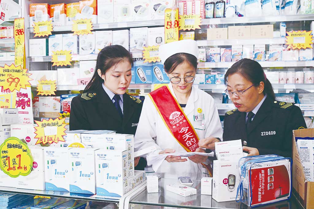 圖為該局執(zhí)法人員在藥店檢查血糖儀產(chǎn)品。本報記者 王宣淞 攝