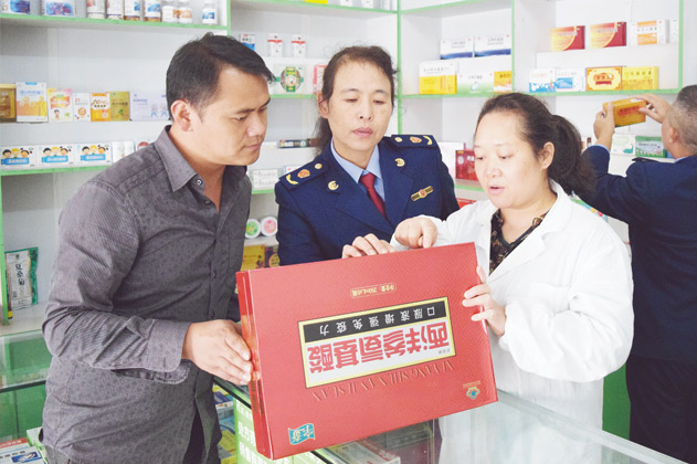 圖為執(zhí)法人員在一家藥店檢查。劉強(qiáng) 曾雪芩 攝影報(bào)道