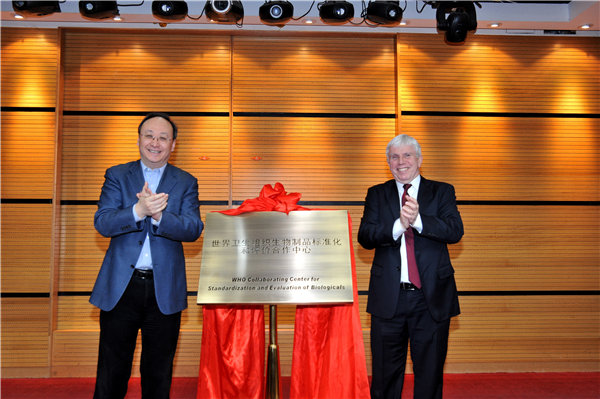 2013年1月28日,中國食品藥品檢定研究院獲批世界衛(wèi)生組織生物制品標(biāo)準化和評價合作中心,國家食品藥品監(jiān)督管理局局長尹力與世界衛(wèi)生組織駐華代表藍睿明博士一起為中心揭牌。中檢院提供