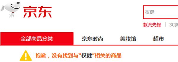 京東頁面顯示:抱歉,沒有找到與“權健”相關的商品;