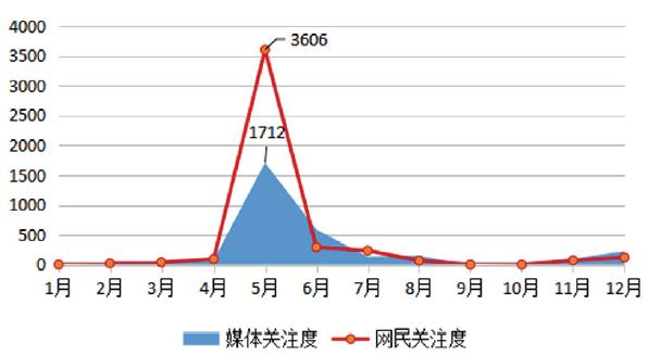 從整體輿情走勢看,如圖1所示,呈現(xiàn)“山峰式”特征,網(wǎng)民關(guān)注度遠(yuǎn)高于媒體關(guān)注度。