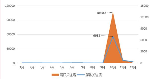 整體來看,關(guān)于云南白藥含氨甲環(huán)酸的討論主要集中于2018年10月和11月。如圖1所示,輿情總體呈現(xiàn)“山峰式”發(fā)展特征。網(wǎng)民關(guān)注度遠(yuǎn)高于媒體關(guān)注度。