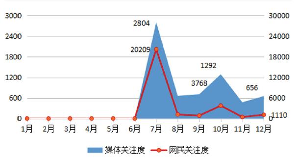 從整體輿情走勢看,如圖1所示,呈現(xiàn)“波浪式”特征,媒體關(guān)注度和網(wǎng)民關(guān)注度走勢一致。
