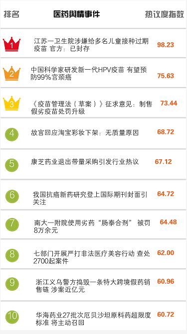 醫(yī)藥輿情排行榜|江蘇一衛(wèi)生院涉嫌給多名兒童接種過(guò)期疫苗