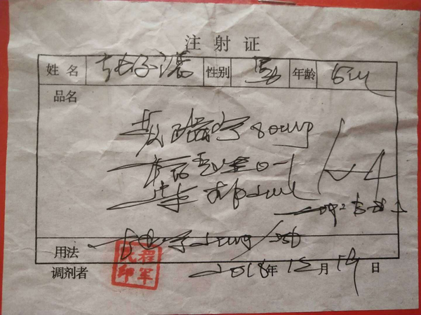 杜良鄉(xiāng)衛(wèi)生院開(kāi)具的注射證