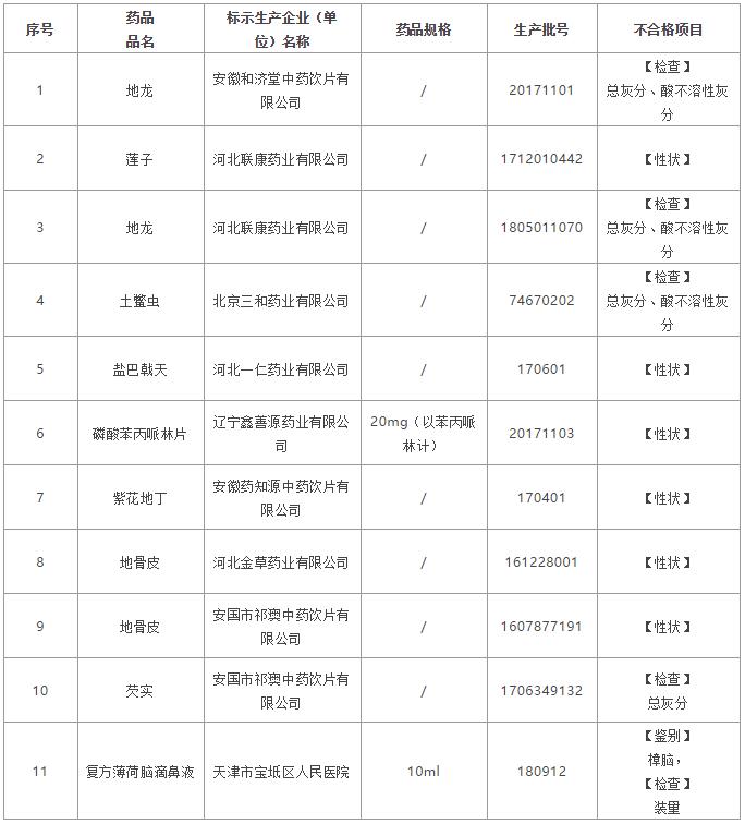 為加強(qiáng)藥品監(jiān)管,保障藥品使用安全有效,對(duì)在天津市藥品生產(chǎn)、經(jīng)營(yíng)、使用環(huán)節(jié)監(jiān)督抽驗(yàn)中11批次不符合標(biāo)準(zhǔn)規(guī)定的藥品予以公告(詳見(jiàn)附件)。