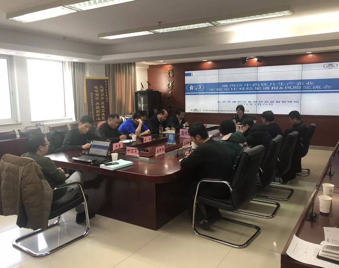 2019年1月23日,通州區(qū)食藥監(jiān)局召開中藥飲片生產(chǎn)企業(yè)實驗室比對結(jié)果反饋暨風(fēng)險交流會,通報了實驗室比對結(jié)果,組織企業(yè)與監(jiān)控中心進(jìn)行交流,轄區(qū)內(nèi)9家中藥飲片生產(chǎn)企業(yè)的法人、企業(yè)負(fù)責(zé)人、質(zhì)量負(fù)責(zé)人及質(zhì)量控制部主管共計30余人參加了此次專題會。