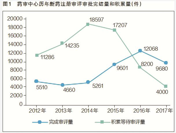 近年來,我國藥品審評審批速度不斷提高,新藥審批等待時間大幅縮減。從藥品審評中心(CDE)公布的歷年藥品審評報告可以看出,藥品注冊申請審評審批速度明顯加快,從2015年之前的年均5000件審評完結量大幅提升到2017年的1萬件左右;積壓等待審評量從2015年高峰期的2.2萬件下降到2017年的約4000件(見圖1),目前注冊積壓已逐步消除,90%的藥品注冊申請實現(xiàn)了法定時限審評。