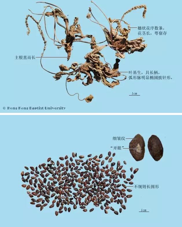 來源:本品為車前科植物車前Plantago asiatica L.或平車前Plantago depressa Willd.的干燥成熟種子。