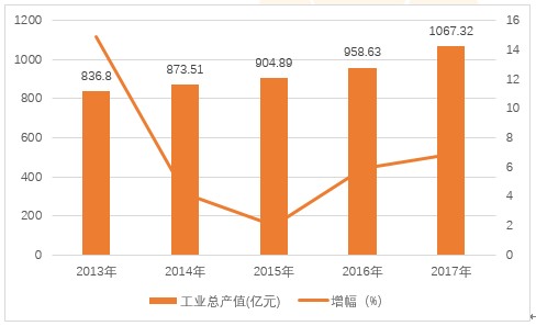 2013-2017年上海市生物醫(yī)藥產業(yè)規(guī)模