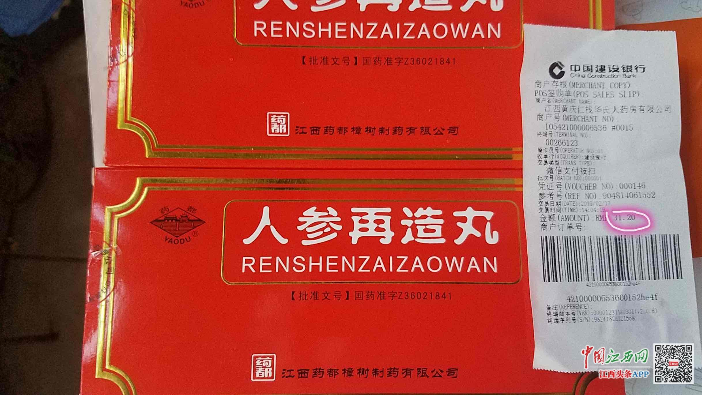 18日下午,當(dāng)記者來到位于南昌市紅谷灘新區(qū)紅谷中大道的洪興大藥房江信國際花園店,詢問“人參再造丸”的價格時,導(dǎo)購員告訴記者:“我們這里是一丸一丸的賣,沒有整盒的,一丸即是一小盒,一小盒12.5元,這個藥是濃縮型的,是純天然提煉出來的,純?nèi)藚⒆龅??!?/p>