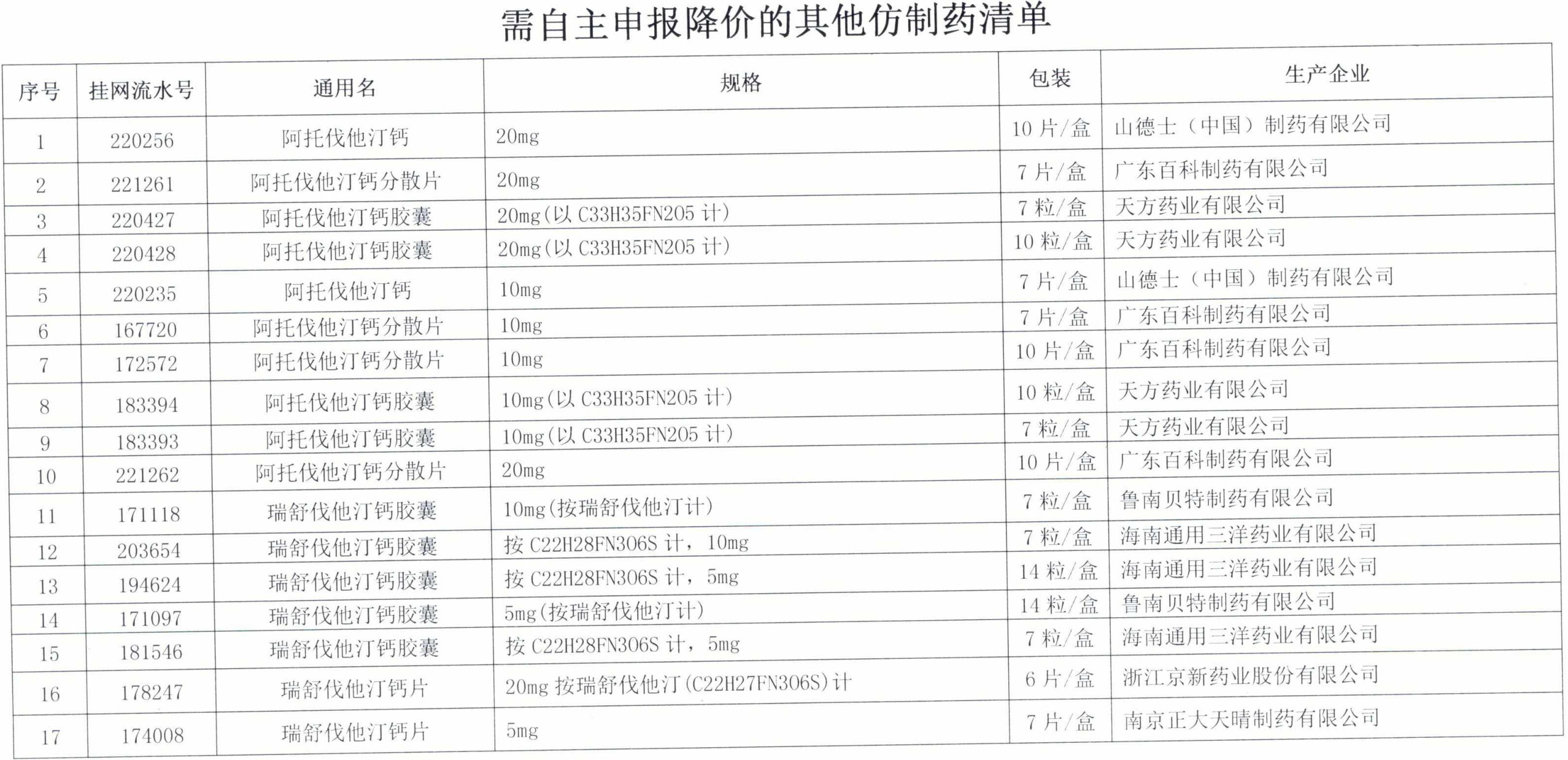 需自主申報(bào)降價(jià)的其他仿制藥(詳見(jiàn)附件3)的采購(gòu)價(jià)須低于同品種中選價(jià)方可繼續(xù)掛網(wǎng)采購(gòu)。由藥品生產(chǎn)企業(yè)在規(guī)定時(shí)限內(nèi),以低于同品種中選價(jià)自主申報(bào)降價(jià)(劑型、規(guī)格、包裝有差比關(guān)系的根據(jù)差比價(jià)規(guī)則計(jì)算)。