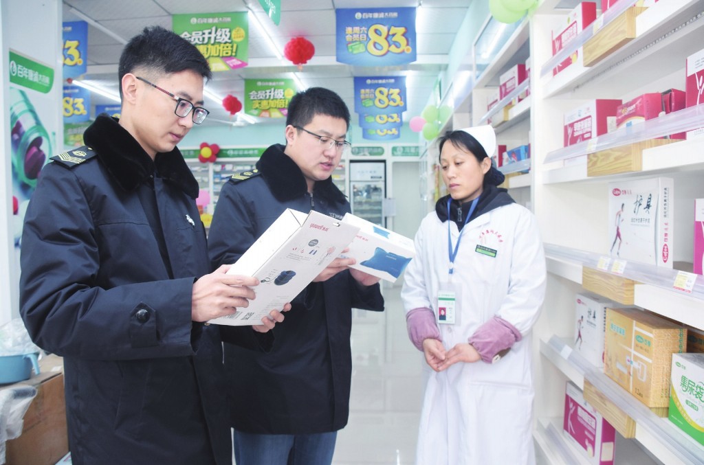 近日,山東省高唐縣市場監(jiān)管局開展醫(yī)療器械安全整治工作,重點檢查轄區(qū)內(nèi)車站、批發(fā)市場附近的醫(yī)療器械專營店,著力打擊從非法渠道購進醫(yī)療器械,銷售過期、失效醫(yī)療器械等違法違規(guī)經(jīng)營行為。 圖為該局執(zhí)法人員在一家門店進行檢查。李慧 攝