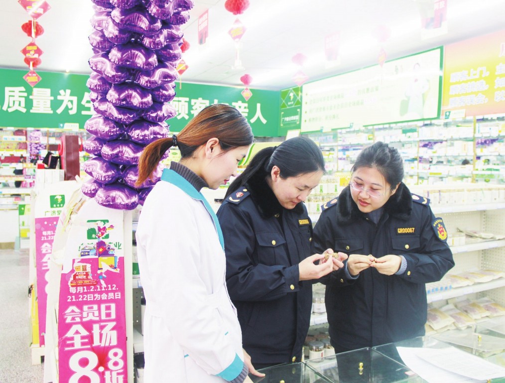 春節(jié)期間,山東省廣饒縣市場監(jiān)管局組織執(zhí)法人員對轄區(qū)各藥品零售企業(yè)的經(jīng)營規(guī)范、購銷環(huán)節(jié)、含特殊藥品復(fù)方制劑管理登記等情況進行檢查,保障群眾節(jié)日期間用藥安全。孫文者 聶威威 攝