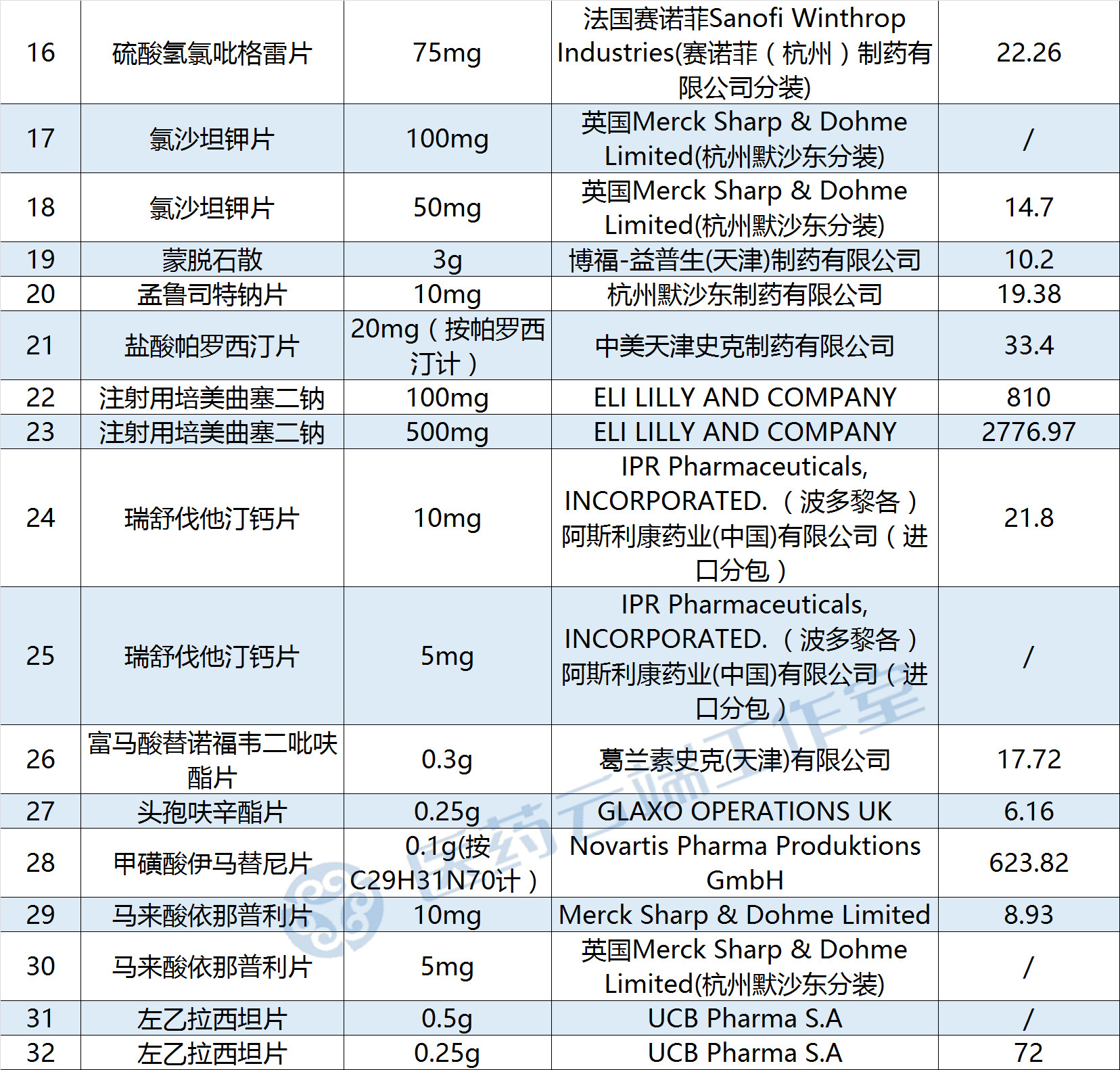 1)參加國家集中采購談判落標(biāo)的最高價(jià)品種(共23個(gè)品種,其中外企20個(gè)、內(nèi)企3個(gè));