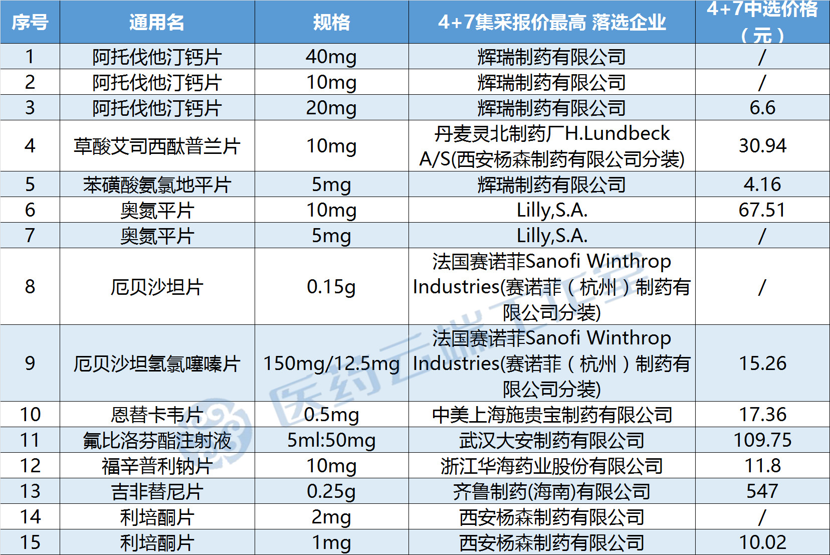 這張表格中,除了3個(gè)國內(nèi)藥企(齊魯、華海、大安)以外,其余都是外資藥企,包括輝瑞的立普妥、絡(luò)活喜、阿斯利康的可定、賽諾菲的波立維、益普生的思密達(dá)等等,這些藥品,在國內(nèi)市場上一直是領(lǐng)先的一線品牌,也都因?yàn)樵?+7集采中報(bào)價(jià)最高而落選。