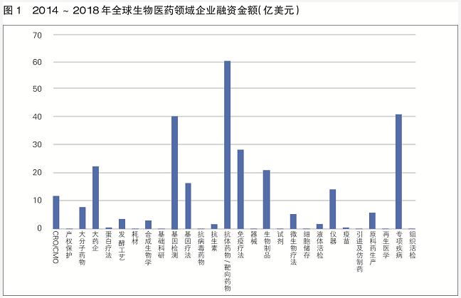 從2014~2018年生物醫(yī)藥領(lǐng)域投融資數(shù)據(jù)看,抗體藥物/靶向藥物、基因檢測、免疫療法和專項疾病治療藥物是目前最受資本關(guān)注的細分領(lǐng)域。其中,抗體藥物/靶向藥物以60.64億美元的融資金額穩(wěn)坐投融資熱榜的“頭把交椅”(見圖1)。
