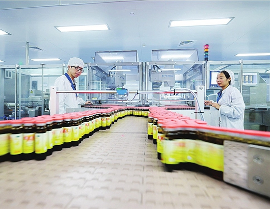 圖為龍鳳堂現(xiàn)代化生產(chǎn)流水線。