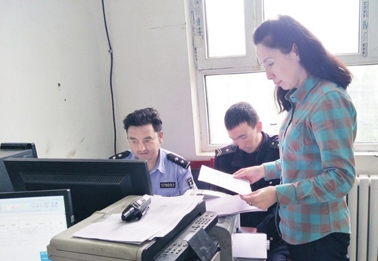 古麗巴哈爾·托乎提(右一)正在核對(duì)貧困戶信息。(李銀川 攝)