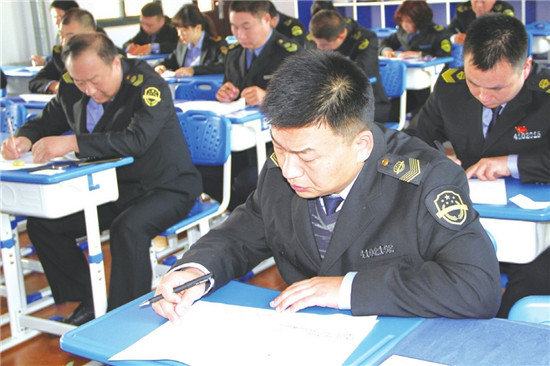 圖為學(xué)習(xí)結(jié)束后,參訓(xùn)人員參加考核測(cè)試。(韓吳琦 攝)