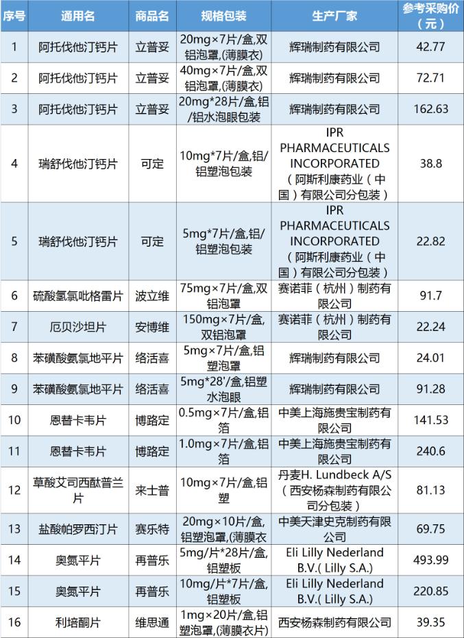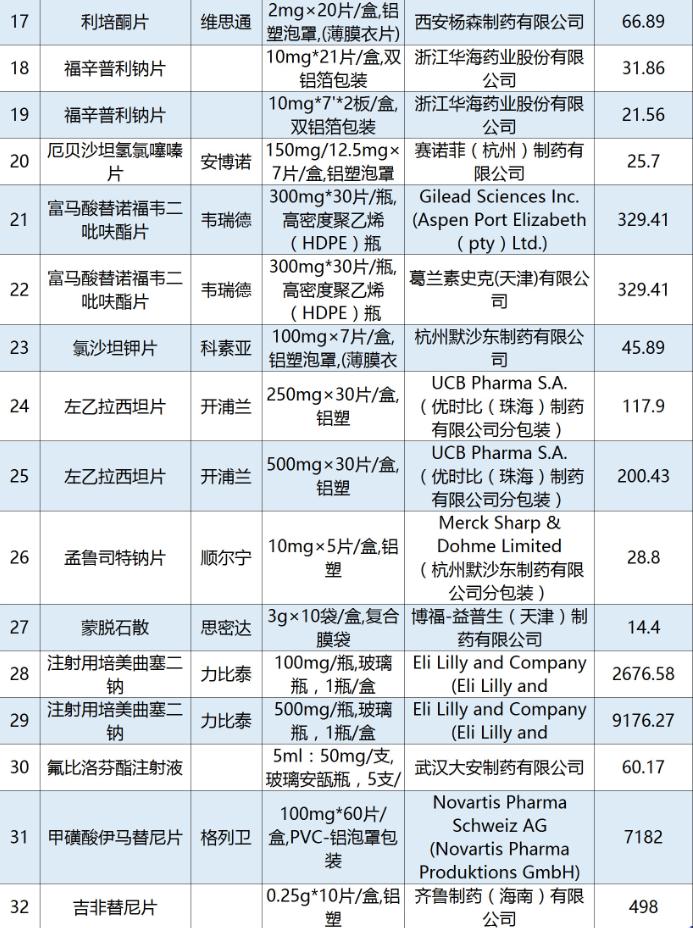 已在上海完成梯度降價(jià)的藥品明細(xì)表