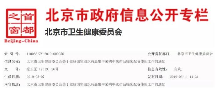 3月11日,北京市發(fā)布通知,落實國家組織藥品集中采購中選藥品臨床配備使用工作。