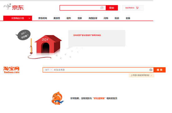 節(jié)目播出后,在“淘寶”“京東”“蘇寧易購(gòu)”等電商平臺(tái)上搜索,未能搜到有關(guān)“蝦扯蛋辣條”的相關(guān)產(chǎn)品。(郭厚杰 輯)