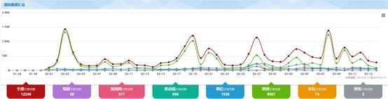 以1月27日~3月14日17時為監(jiān)測時間段,如上圖所示,輿情走勢呈“波浪式”發(fā)展特征,網(wǎng)民關(guān)注度遠(yuǎn)高于媒體關(guān)注度。