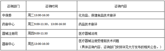 與以往相比,“中保委”“藥審中心”“器審中心”現(xiàn)場咨詢時間延長30分鐘,下午結束時間從目前的16:00推遲到16:30。電話咨詢服務截止時間統(tǒng)一延長至16:30。而“受理和舉報中心”值班日則調整為“周一、二、四全天,周三、五上午”。