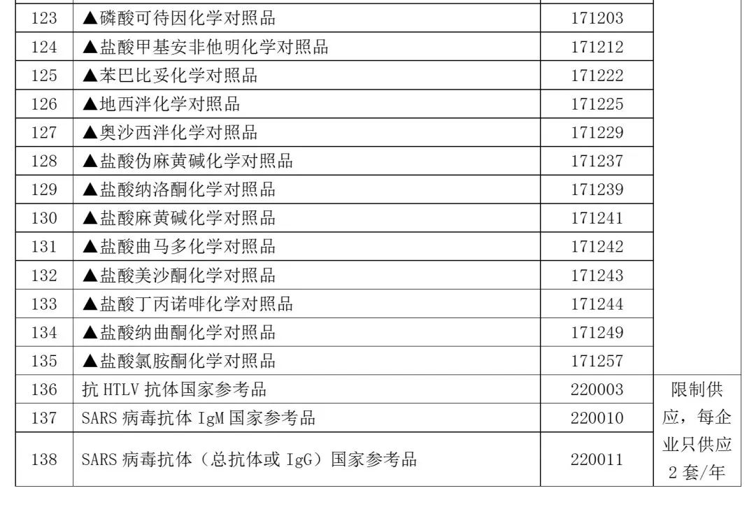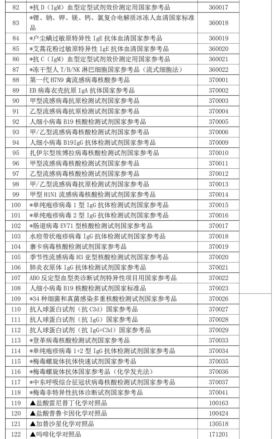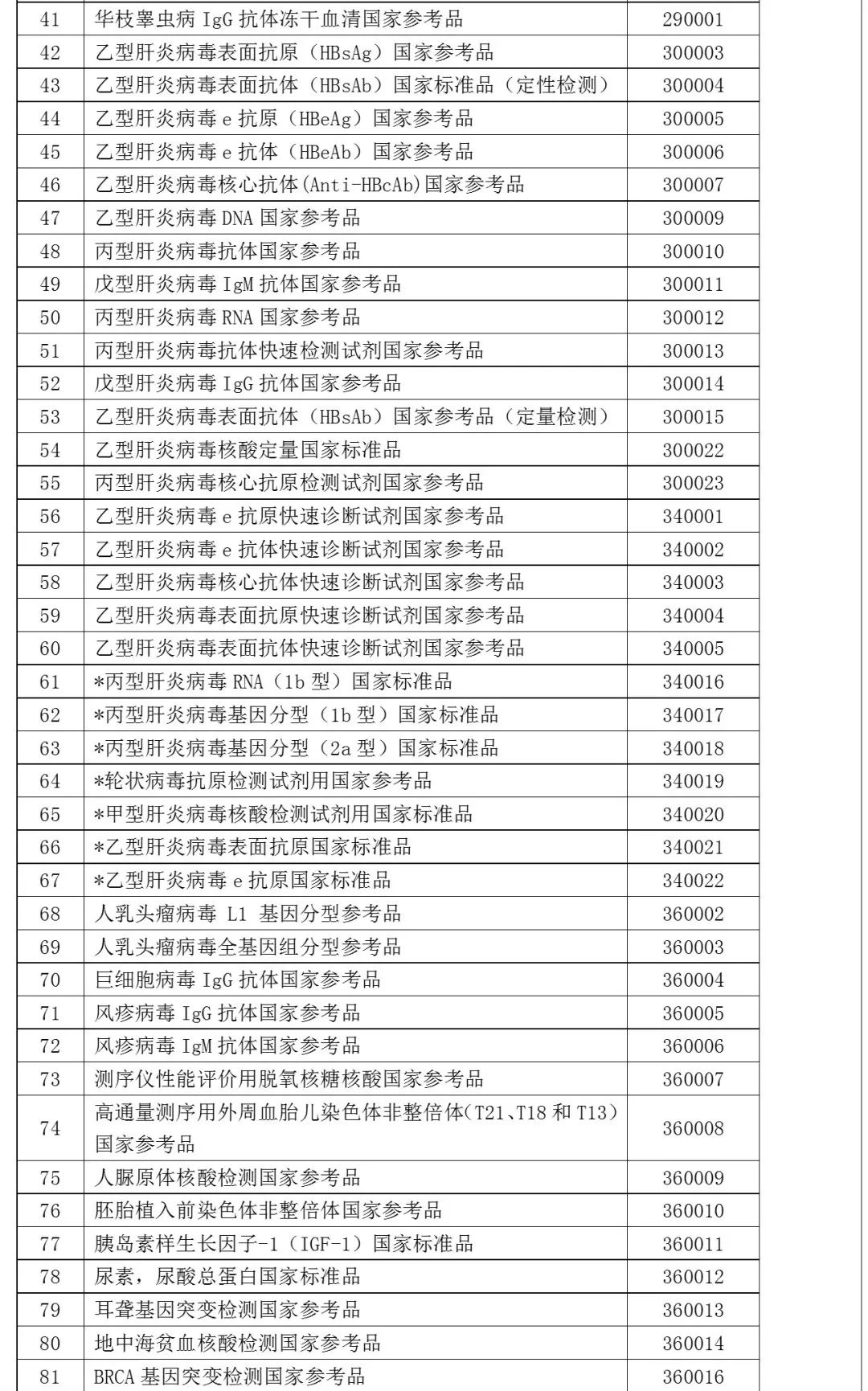 1. *標(biāo)識(shí)品種為本期目錄新增體外診斷試劑標(biāo)準(zhǔn)物質(zhì)。
