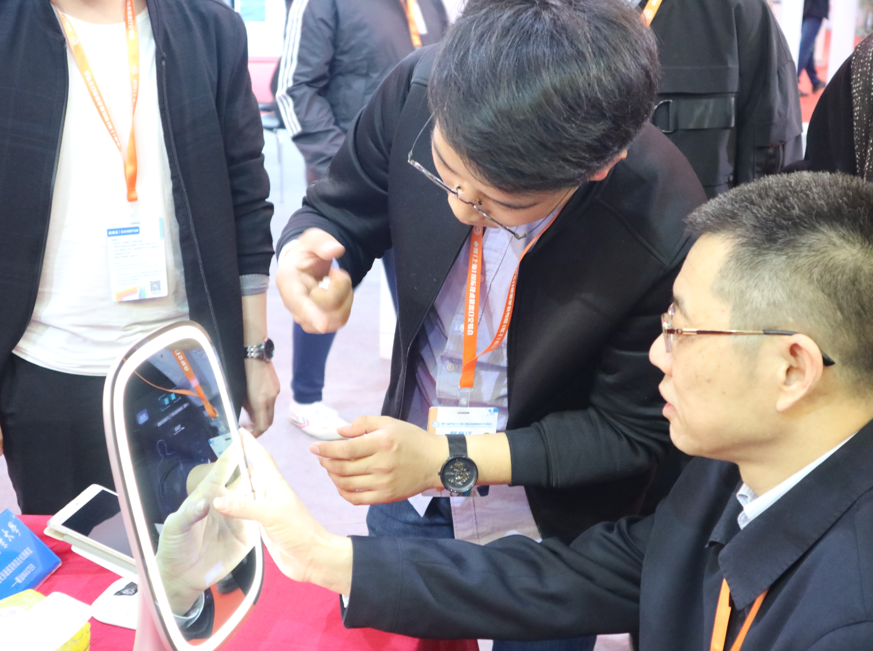 上海中醫(yī)藥大學(xué)的學(xué)生正在使用云中醫(yī)智能鏡幫助觀眾檢測(cè)健康。(中國(guó)食品藥品網(wǎng)實(shí)習(xí)記者康紹博 攝)