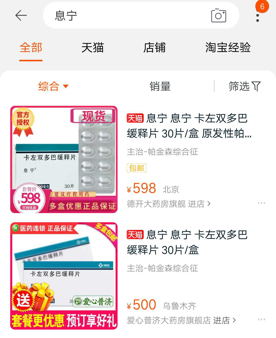 值得關(guān)注的還有藥價(jià)上漲的現(xiàn)象。4月22日,有患者家屬在百度貼吧發(fā)文,說“淘寶太貴了,我爸需要息寧?!庇浾咴谔詫毦W(wǎng)搜索發(fā)現(xiàn),僅兩家藥店在售此藥,但售價(jià)在500元以上,相比50~70元的正常價(jià)格漲了近10倍。4月29日,記者詢問時(shí),德開大藥房旗艦店的息寧價(jià)格為598一盒,店鋪客服表示有貨,頁面所示為最低價(jià)格。另一家愛心普濟(jì)大藥房旗艦店的藥價(jià)為500一盒,但客服表示沒有現(xiàn)貨,顧客需先提交預(yù)定,到貨后店鋪客服會(huì)留言通知,但“到貨時(shí)間不敢保證”。