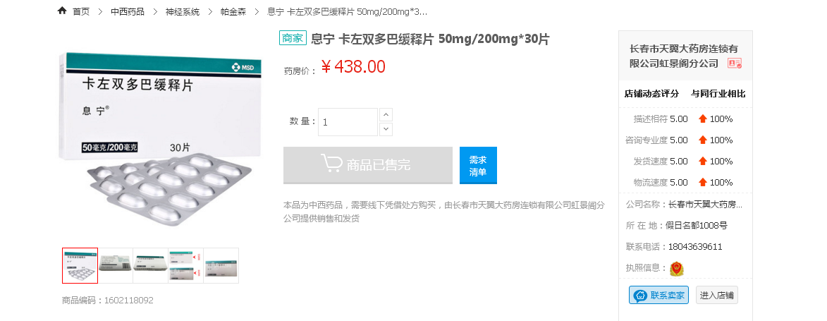 查看1藥網(wǎng)入駐的藥店,多家標(biāo)價(jià)在400元以上的藥店的產(chǎn)品已售罄。