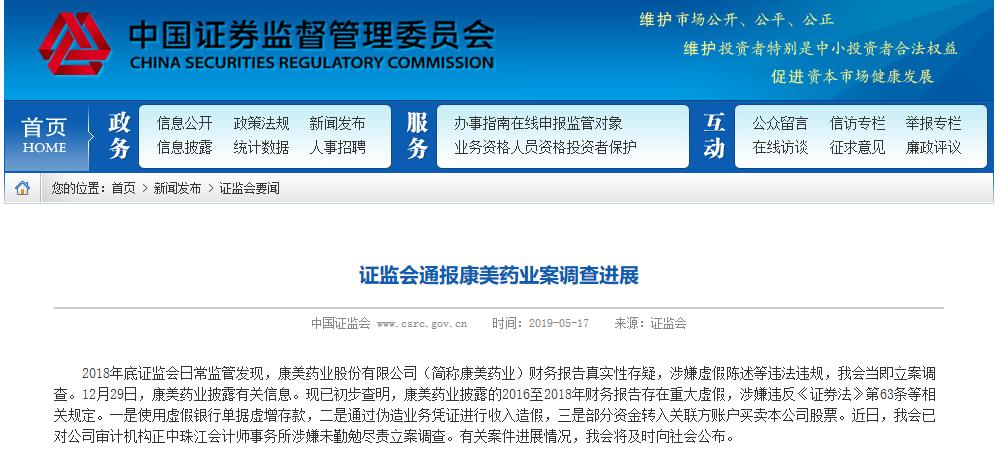 中國食品藥品網(wǎng)訊(記者 落楠) 5月17日,證監(jiān)會通報康美藥業(yè)案調查進展,明確表示已初步查明,康美藥業(yè)披露的2016~2018年財務報告存在重大虛假,涉嫌違反《證券法》第六十三條等相關規(guī)定。