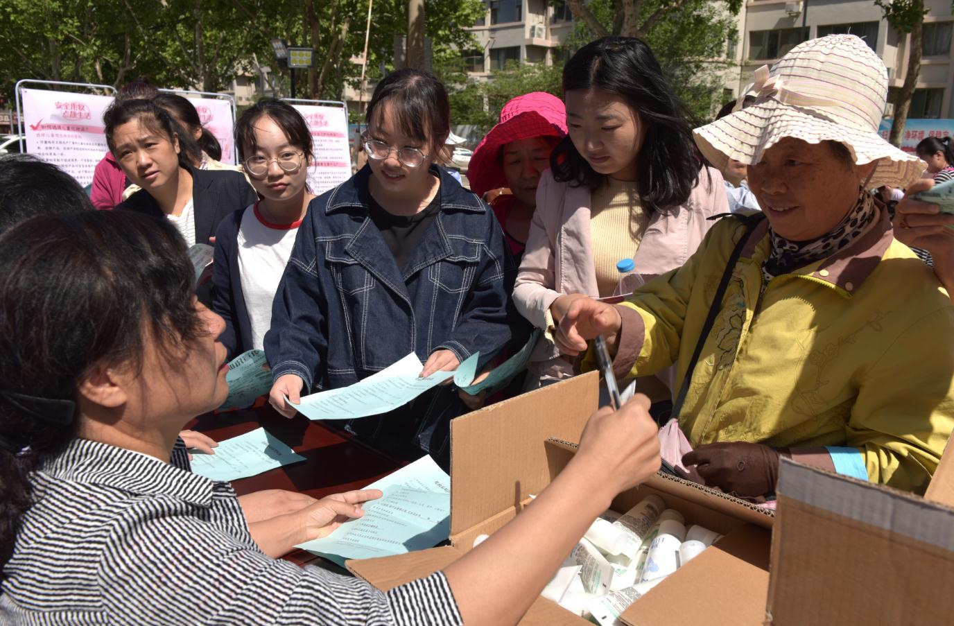山東省審評認證中心邀請化妝品安全專家走進羊頭峪社區(qū),與消費者面對面交流。