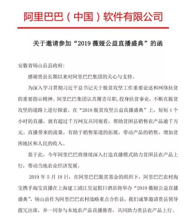 5月18日,在阿里巴巴脫貧基金會(huì)組織下,阿里巴巴農(nóng)村淘寶攜手淘寶直播在上海舉辦“2019 薇婭公益直播盛典”,通過直播模式助力縣域農(nóng)產(chǎn)品上行,帶動(dòng)當(dāng)?shù)剜l(xiāng)村振興發(fā)展。碭山縣作為阿里巴巴農(nóng)村戰(zhàn)略重點(diǎn)合作縣應(yīng)邀參加。