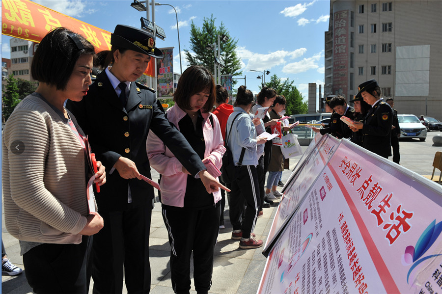 圖為該局工作人員在發(fā)放宣傳資料。吳進(jìn)斌 孫淵 攝影報(bào)道