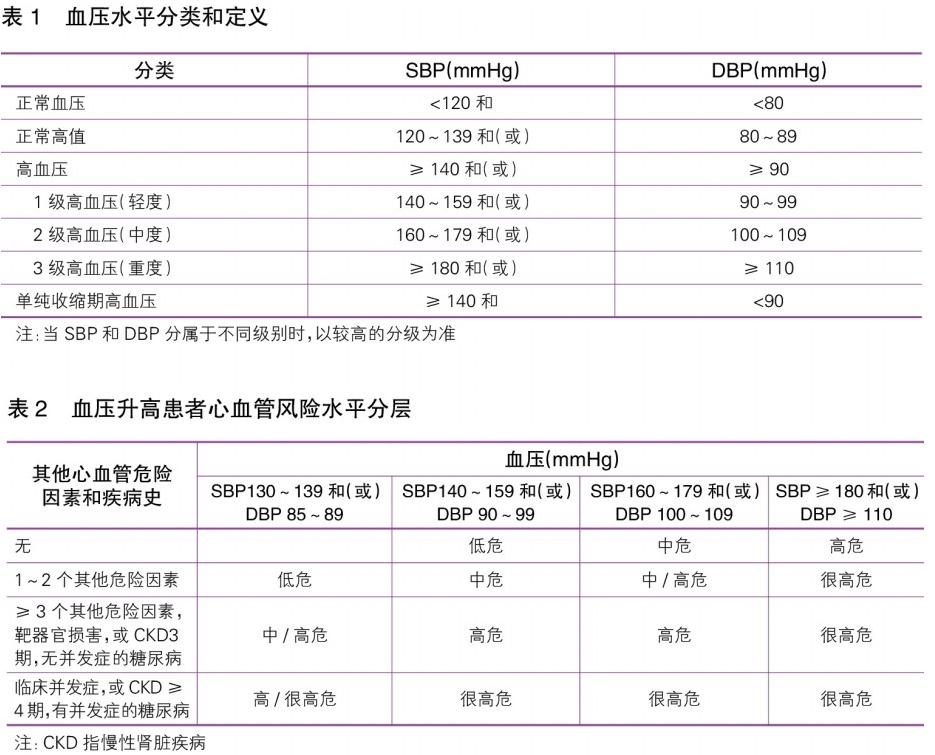 高血壓定義為:在未使用降壓藥物的情況下,非同日3次測(cè)量診室血壓,收縮壓(SBP)≥ 140mmHg和(或)舒張壓(DBP)≥90mmHg。SBP≥140mmHg但DBP<90mmHg為單純 收縮期高血壓。患者既往有高血壓史,目前正在使用降壓藥物,血壓雖然低于140/90mmHg,仍應(yīng)診斷為高血壓。