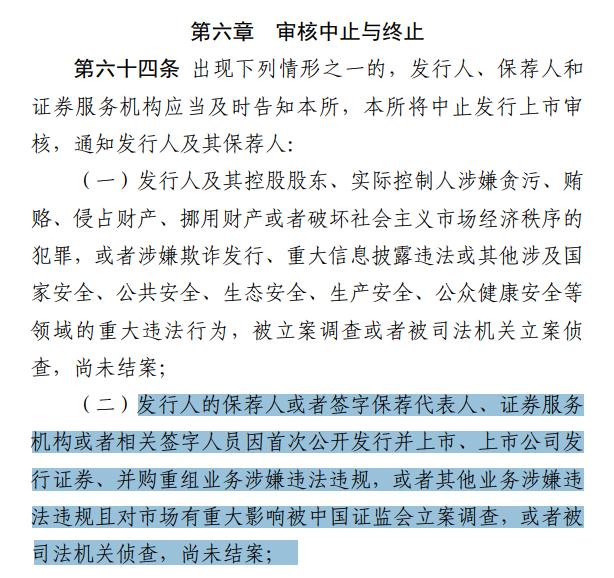 根據(jù)《上海證券交易所科創(chuàng)板股票發(fā)行上市審核規(guī)則》,出現(xiàn)包括“發(fā)行人的保薦人或者簽字保薦代表人、證券服務機構或者相關簽字人員因首次公開發(fā)行并上市、上市公司發(fā)行證券、并購重組業(yè)務涉嫌違法違規(guī),或者其他業(yè)務涉嫌違法違規(guī)且對市場有重大影響被中國證監(jiān)會立案調(diào)查,或者被司法機關偵查,尚未結案”在內(nèi)的七種情形之一時,上交所將中止發(fā)行上市審核。而上交所5月24日中止審核的企業(yè)中有3家會計師事務所均為正中珠江會計師事務所。