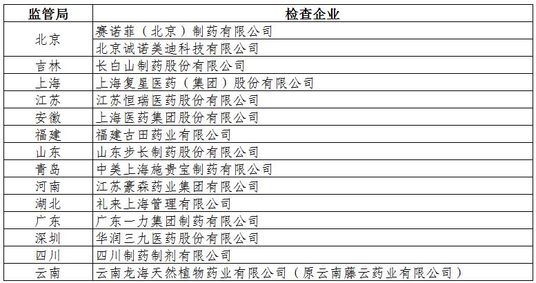 附件1:監(jiān)管局2019年醫(yī)藥企業(yè)會(huì)計(jì)信息質(zhì)量檢查名單