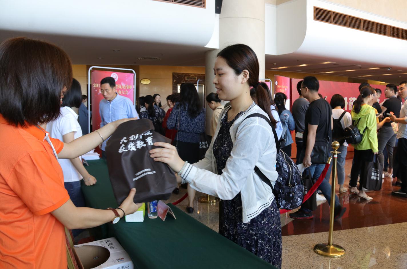 參會(huì)人員在領(lǐng)書處領(lǐng)取天創(chuàng)科技在線教育的培訓(xùn)資料。記者李碩 攝