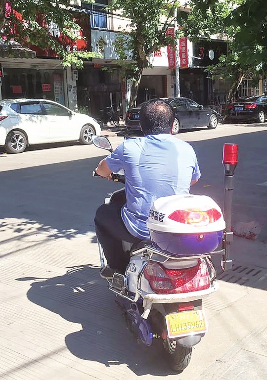 圖為執(zhí)法人員在檢查路上。 章一豐 攝