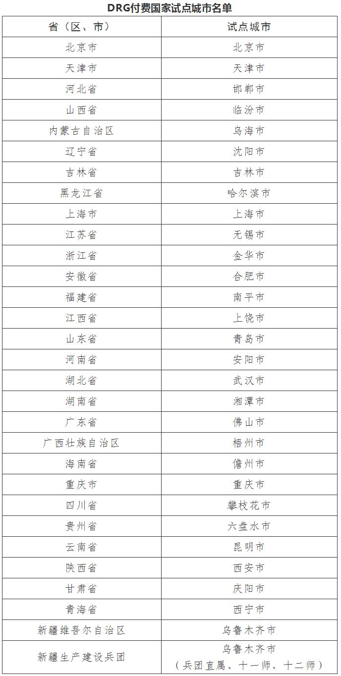 1.DRG付費(fèi)國家試點(diǎn)城市名單