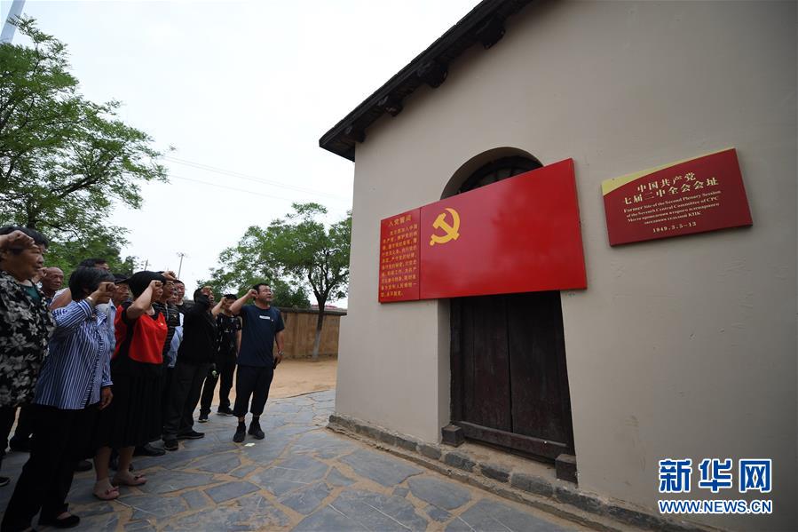 在河北西柏坡中國(guó)共產(chǎn)黨七屆二中全會(huì)會(huì)址,黨員重溫入黨誓詞(6月20日攝)。新華社記者朱旭東攝
